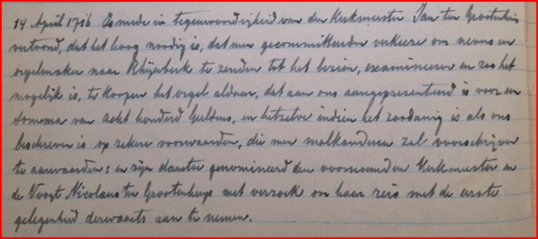 Nu heb ik enkele jaren geleden van een heer Boland, ook uit België een aantal boekjes, voor het archief gekregen met notities over de kerk in Dinxperlo. Dit gaat terug tot 1677. Ook het verhaal van het orgel is daar in terug te vinden.
