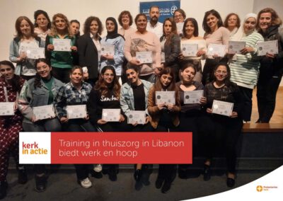 Door de zware economische crisis in Libanon zoeken veel jongeren werk in het buitenland. Ouderen blijven alleen achter als hun kinderen zijn vertrokken. Hierdoor is er veel vraag naar thuiszorgwerkers. Dat biedt Libanezen en Syrische vluchtelingen een kans: na een thuiszorgtraining kunnen cursisten vrijwel direct aan het werk en ook beter zorg verlenen aan hun eigen familieleden en buren.