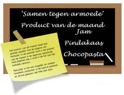 Zondag 25 januari werden er speciale bedrukte tassen verstrekt bij de uitgang van de kerk. We hebben u als gemeente gevraagd om in die week houdbare producten te verzamelen voor de Voedselbank om vervolgens de gevulde tassen dan weer in te leveren bij het Kerkelijk Centrum de zondag erop.